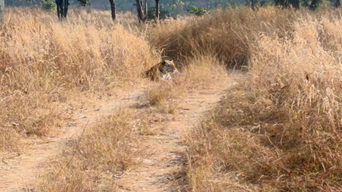 वही जानकारी के अनुसार, यह घटना सुबह 7 बजे की है, जब प्रेरकों की गाड़ी अपने निर्धारित मार्ग से गुजर रही थी. इसी दौरान सूखी झाड़ियों के बीच से निकलकर एक बाघ सीधे सड़क पर आ गया और सड़क के बीचो-बीच बैठ गया. जहां बाघ काफी देर तक वहीं आराम से बैठा रहा और हिलने का नाम नहीं लिया. बाघ के सड़क पर बैठे रहने से पर्यटकों की गाड़ी आगे नहीं बढ़ सकी, जिसके बाद सुरक्षा को ध्यान में रखते हुए जिप्सी को पीछे करना पड़ा और दूसरे वैकल्पिक मार्ग से पर्यटकों को आगे ले जाया गया.