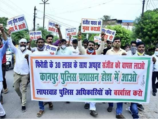 सत्यम् लाइव, 20 जुलाई 2020 कानपुर।। उत्तर प्रदेश की उद्योगिक नगरी कानपुर के बर्रा पांच की एल.आइ.जी. कॉलोनी निवासी चमन सिंह यादव के बेटे संजीत का 22 जून 2020 को अपहरण हो गया फिर 29 तारीख 2020 को अपहरणकर्ता का फोन आने के बाद बीती, 13 जुलाई को परिवार वालों ने 30 लाख रुपये की फिरौती भी दे दी, लेकिन अब तक संजीत का पता नहीं लगा है। पुलिस को घटनास्थल और सर्विलांस के जरिए पीडि़त परिवार के ही करीबियों पर शक है। पुलिस क्षेत्र में रहने वाले कुछ बदमाशों की भी तलाश कर रही है। पैथोलॉजी कर्मचारी संजीत यादव के अपहरण मामले में लापरवाही बरतने के आरोप में तथा लैब टैक्नीशियन संजीत यादव अपहरण कांड में खनन माफिया का पक्ष लेने वाले बर्रा के इंस्पेक्टर को निलंबित कर दिया गया है। बर्रा में अपहर्ताओं को पीड़ित परिवार से 30 लाख रुपये की फिरौती दिलवाने के बाद भी संजीत यादव को छुड़ाने में नाकाम बर्रा के चर्चित थाना प्रभारी रणजीत राय को एसएसपी ने स्वयं निलंबित कर किया है। सर्विलांस सेल के प्रभारी हरमीत सिंह को नया प्रभारी बनाया है। इस बात केस को लेकर कानपुर में जुलूस तक निकाले जा रहे हैं और जगह जगह न्याय की मॉग की जा रही है।