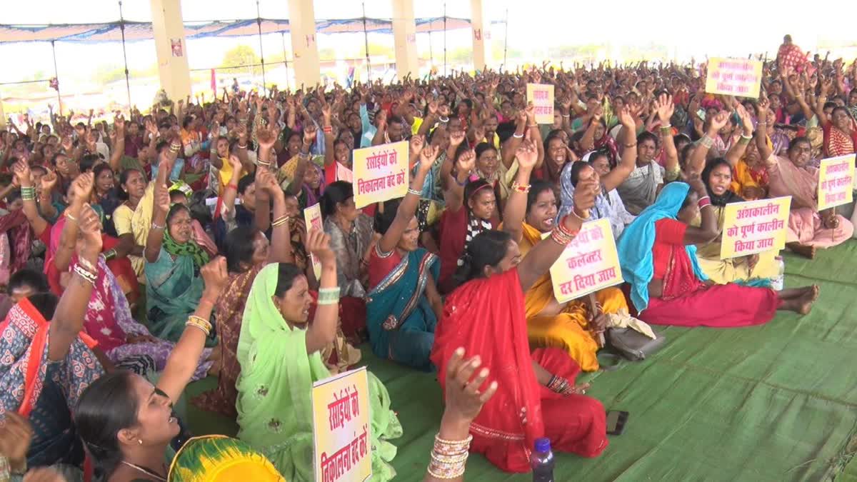 रसोइया संघ की मांगों और उनकी परेशानियों को लेकर, ईटीवी भारत ने धरना स्थल का पड़ताल किया. वहां पर पूरा धरना स्थल टेंट सिटी में बदल गया है. सारे रसोईया संघ के लोग परिवार और बच्चों के साथ यहां अस्थाई तौर पर अपना घर बनाकर प्रदर्शन कर रहे हैं. उनका कहना है जब तक हमारी मांग पूरी नहीं हो जाती, हम यहां से नहीं जाएंगे. लेकिन इस बीच एक सवाल और है कि पूरे राज्य के मध्यान भोजन बनाने वाले रसोइया जब धरना स्थल पर बैठे हुए हैं, तो फिर विद्यालयों में मध्याह्न भोजन कैसे बन रहा है. इसे लेकर ईटीवी भारत ने जब धरने पर बैठे रसोइया संघ के पदाधिकारी से बात की. उनका कहना था कि सरकार को इस बात की चिंता ही नहीं है कि पूरे राज्य में शैक्षणिक सत्र कैसे चलेगा. बच्चों की पढ़ाई कैसे होगी. बच्चे आ रहे हैं लेकिन भूखे रह रहे हैं. इस बात की चिंता करना अब सरकार नहीं कर रही है.