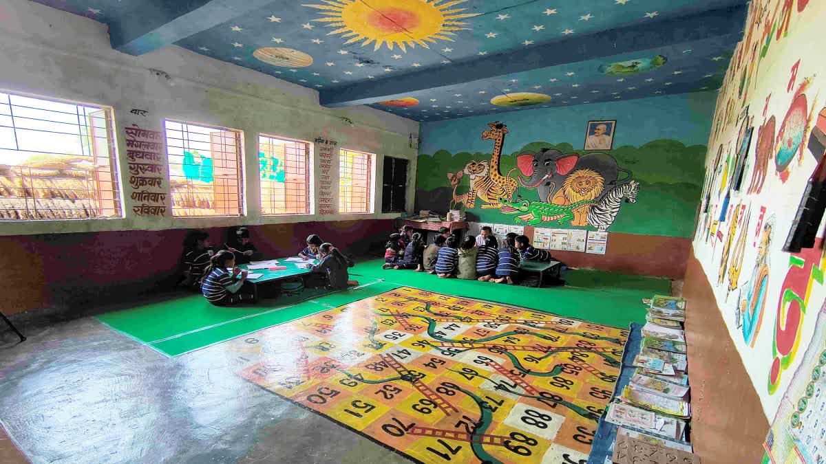 राजगढ़ : राजगढ़ जिला मुख्यालय से करीब 6 किलोमीटर की दूरी पर स्थित मोरपीपली गांव का शासकीय प्राथमिक स्कूल बड़े शहरों के महंगे निजी स्कूल से बेहतर है. इस शासकीय सेटेलाइट प्राइमरी स्कूल में गांव के बच्चों के लिए वे तमाम सुविधाएं उपलब्ध हैं, जो प्राइवेट स्कूल में दी जाती है.