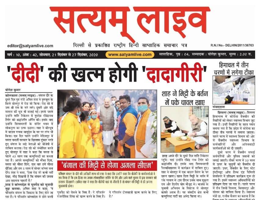 सत्यम लाइव (ई-पेपर), वर्ष: 10, अंक: 42, 21 दिसंबर से 27 दिसंबर 2020