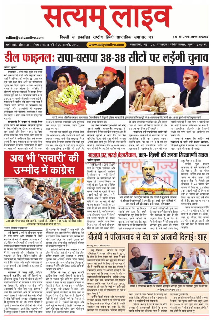 सत्यम् लाइव (ई-पेपर), वर्ष: 8, अंक: 45, 14 जनवरी से 20 जनवरी 2019
