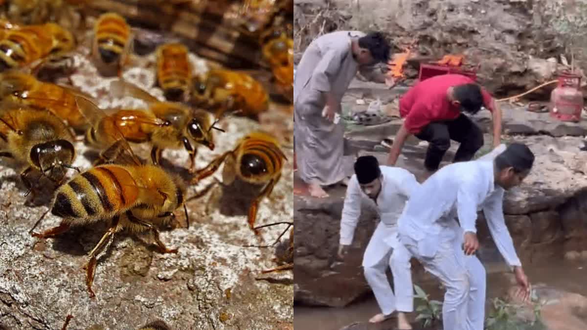 मधुमखियों के हमले से बचते नजर आए रोजेदार