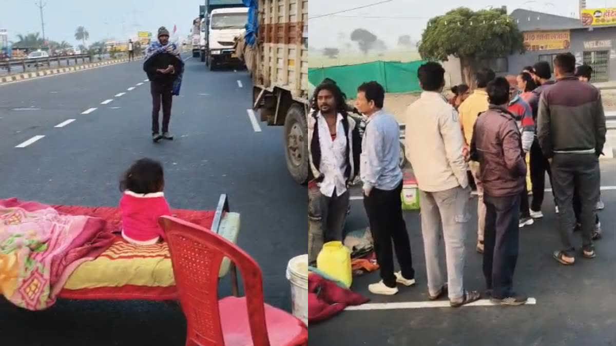 सामान हाईवे पर रखकर लगा दिया जाम